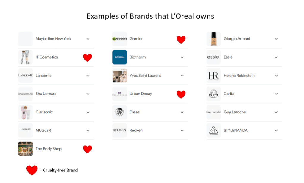 To give a little more context into the Parent Company Conversation, here are some of the brands that L’Oreal owns. I have marked the cruelty-free ones.